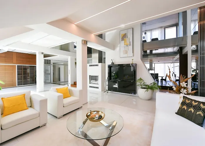 Położony w dzielnicy Praga 1 Presidential Penthouse, 303M2, Jacuzzi On Terrace, Sauna, 6Bdrm, 4Bthrm, Ac, Lift o powierzchni 303 m^2 oferuje Gościom jacuzzi i saunę. Letenské sady leży w 2 km, a Muzeum Narodowe w Pradze sąsiaduje z tym apartamentem.